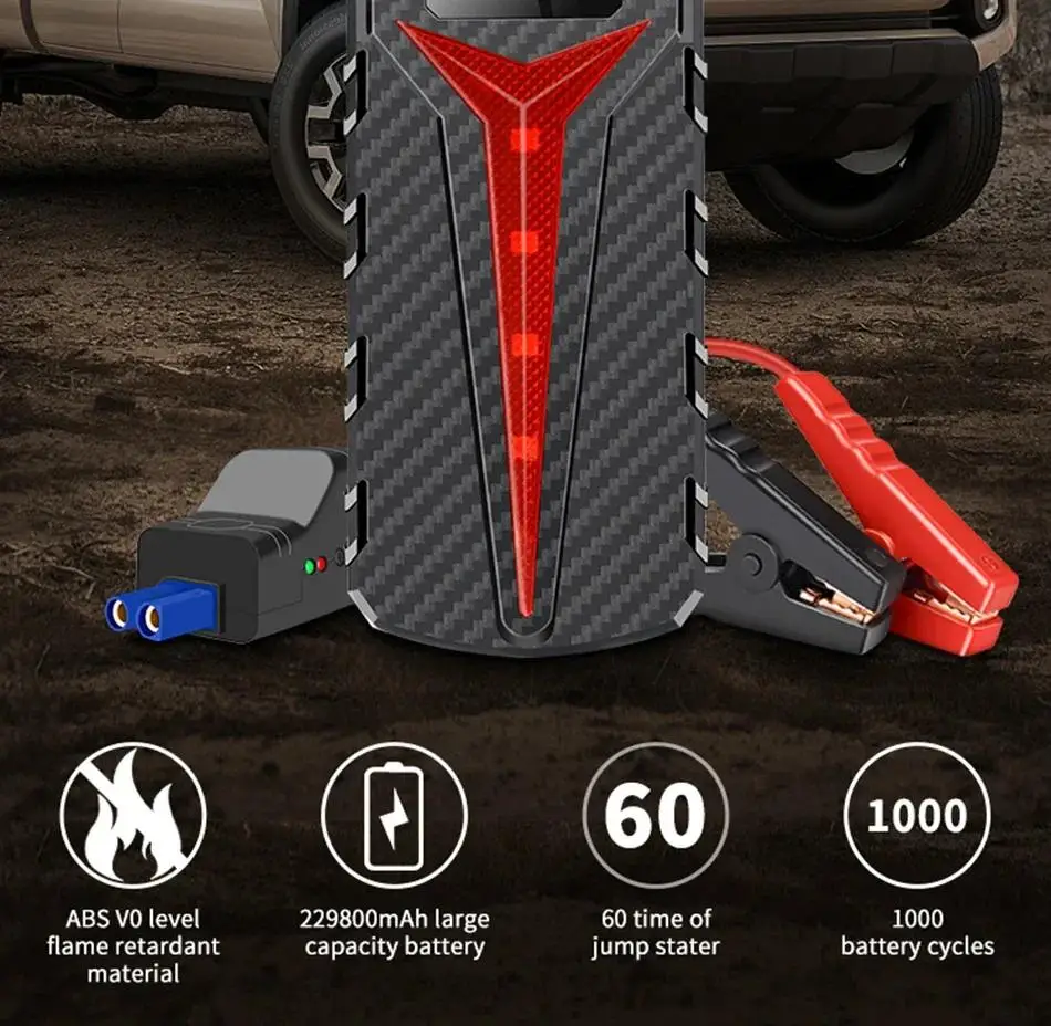 The ZapGoply Jump Starter For Car features advanced DSLI IV technology that increases voltage by 30% to 12V, delivering a massive 8000A peak current to start your vehicle in just one second. Applicable to 12V vehicles, starting gasoline vehicles 5.0L or less, starting diesel vehicles 3.0L or less